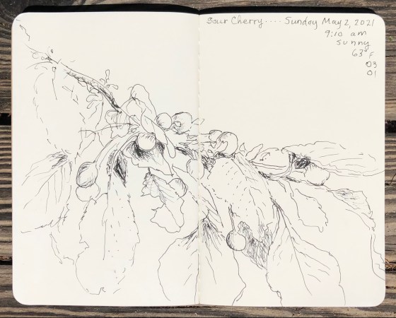 Nature journaling: one of a series of observations over the spring as this beautiful tree transformed into a lush array of dancing leaves and bobbing fruits.
