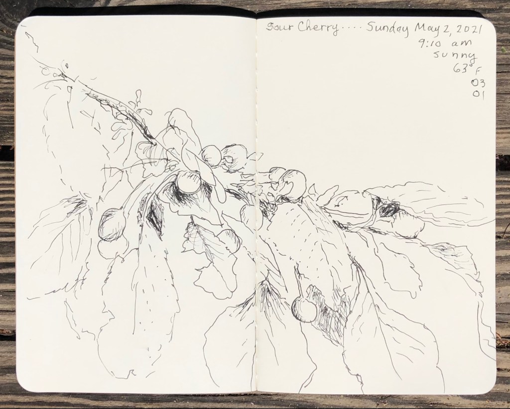 Nature journaling: one of a series of observations over the spring as this beautiful tree transformed into a lush array of dancing leaves and bobbing fruits.