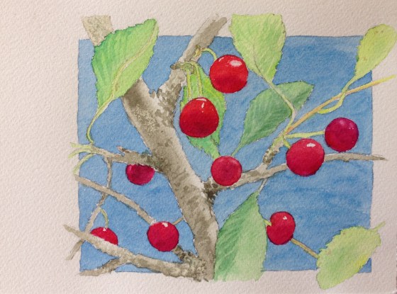 sunlight blazed through the graceful cherry tree as we gathered its fruit